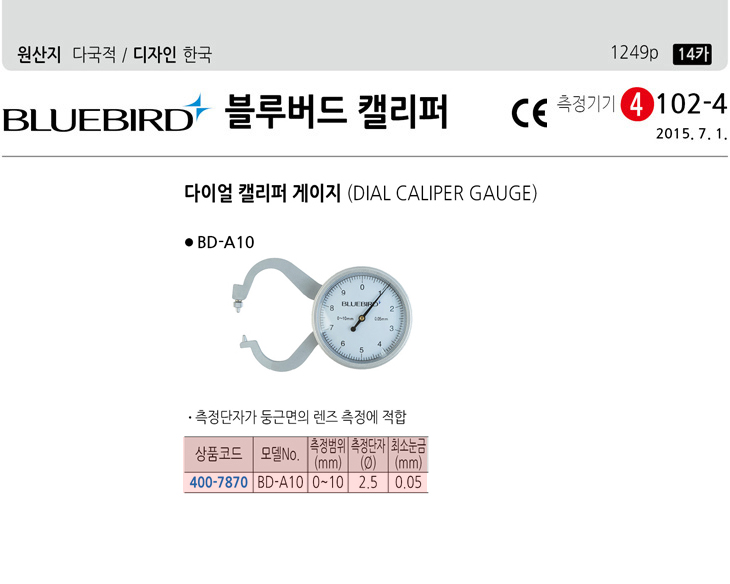 [ºí·ç¹öµå] ´ÙÀÌ¾ó °¶¸®ÆÛ °ÔÀÌÁö(BD-A10, µÕ±Ù¸éÀÇ ·»Áî ÃøÁ¤, ÃøÁ¤¹üÀ§:0~10mm)(Dial Caliper Gauge)