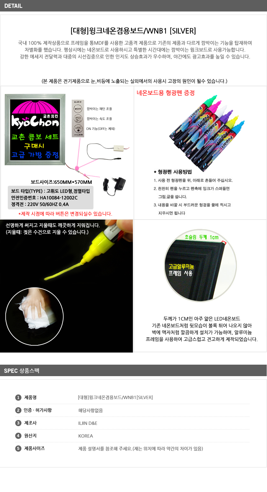 [ÀÏÁø] ´ëÇü À®Å©³×¿Â°â¿ëº¸µå(WNB1-S ½Ç¹ö, 570x650mm, Á¡¸ê LED ³×¿Âº¸µå, ÀüÀÚ°Ô½ÃÆÇ, Çü±¤Ææ Æ÷ÇÔ)