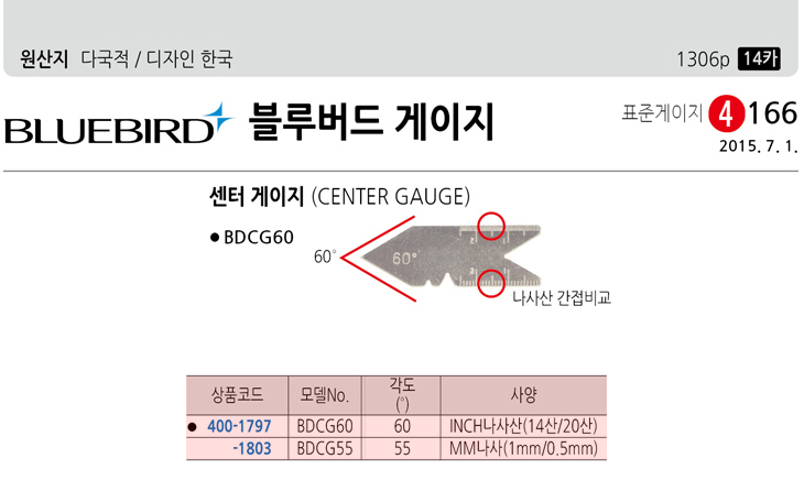 [ºí·ç¹öµå] ¼¾ÅͰÔÀÌÁö(BDCG55, 55µµ, mm³ª»ç»ê 1.0mm/0.5mm)(Center Gauge)