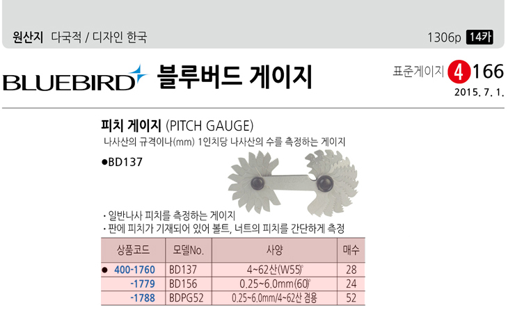 [ºí·ç¹öµå] ÇÇÄ¡°ÔÀÌÁö(BD156, 0.25~6.0mm, 60µµ, 24¸Å)(Pitch Gauge)
