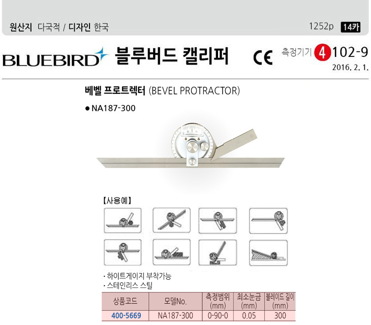 [ºí·ç¹öµå] º£º§ ÇÁ·ÎÆ®·ºÅÍ/º£º§°¢µµ±â (NA187-300, 0~90~0mm, ÃÖ¼Ò´«±Ý:0.05mm)(Bevel Protractor)