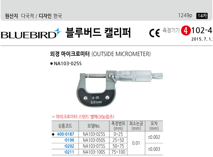 [ºí·ç¹öµå] ¿Ü°æ ¸¶ÀÌÅ©·Î¹ÌÅÍ(NA103-025S/NA103-050S/NA103-075S/NA103-100S ¼±Åð¡´É)(Outside micrometer)