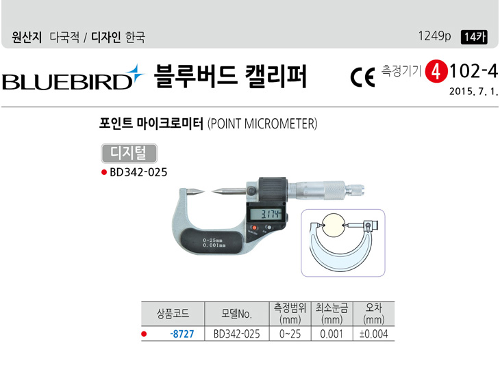 [ºí·ç¹öµå] µðÁöÅÐ Æ÷ÀÎÆ® ¸¶ÀÌÅ©·Î¹ÌÅÍ(BD342-025,0~25mm, 0.001mm)(Digital Point micrometer)(ÁÖ¹®Àü Àç°íÈ®ÀÎ)