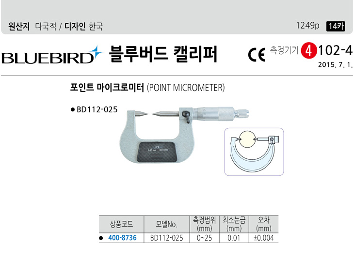 [ºí·ç¹öµå] Æ÷ÀÎÆ® ¸¶ÀÌÅ©·Î¹ÌÅÍ(BD112-025,0~25mm, 0.01mm)(Point micrometer)