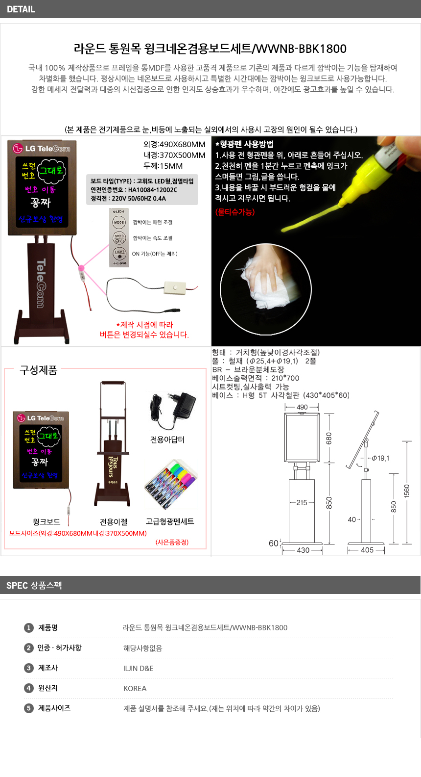 [ÀÏÁø] ¶ó¿îµå Åë¿ø¸ñ À®Å© ³×¿Â°â¿ëº¸µå ¼¼Æ®(WWNB-BBK1800 ºê¶ó¿î, 490x680mm, Á¡¸ê LED ³×¿Âº¸µå, »óǰ¾È³»/±¤°í, ÀüÀÚ°Ô½ÃÆÇ, Çü±¤Ææ Æ÷ÇÔ)