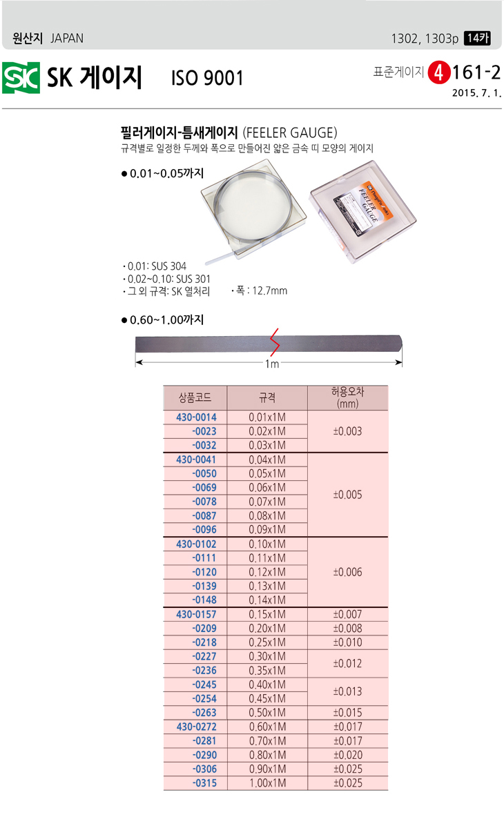 [SK] ÇÊ·¯°ÔÀÌÁö/Æ´»õ°ÔÀÌÁö(0.60mm x 1¹ÌÅÍ)(Feeler Gauge)
