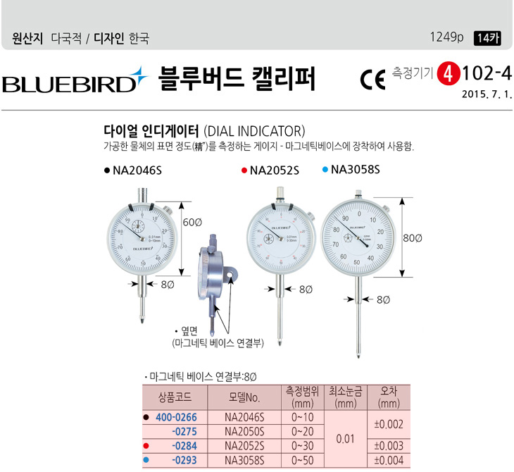 [ºí·ç¹öµå] ´ÙÀ̾ó Àεð°ÔÀÌÆ®(NA2046S/NA2050S/NA2052S/NA3058S, Ç¥¸éÁ¤µµ ÃøÁ¤/¸¶±×³×ƽº£À̽º ÀåÂø)(Dial Indicator)