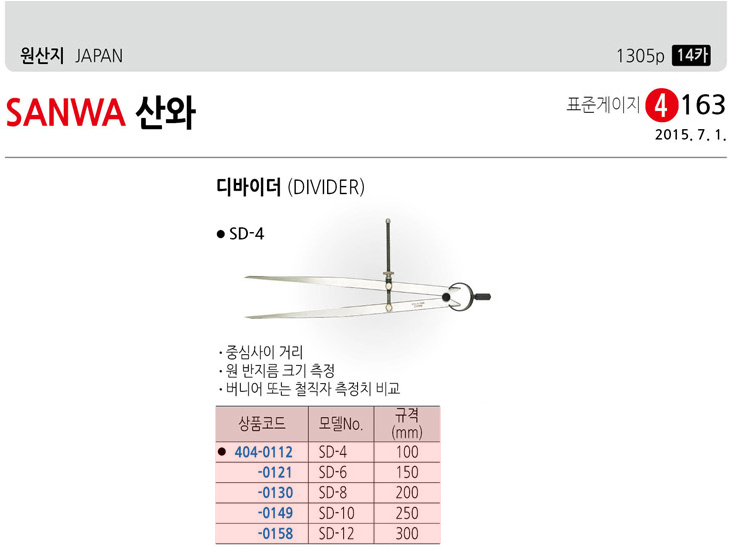 [SANWA] µð¹ÙÀ̵å(SD-6, 150mm, Á߽ɻçÀ̰Ÿ®ÃøÁ¤¿ë)(Divider)