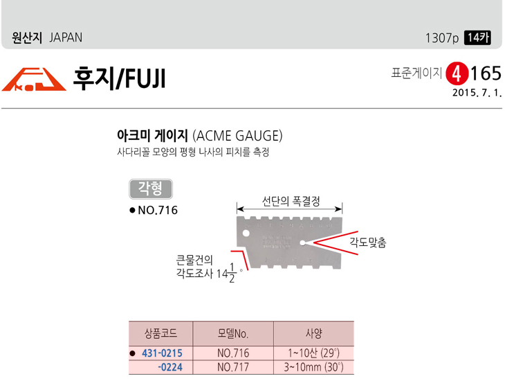 [ÈÄÁö] ¾ÆÅ©¹Ì°ÔÀÌÁö °¢Çü(No.716, 1~10»ê 29µµ)(ACME Gauge)(ÁÖ¹®Àü Àç°íÈ®ÀÎ)