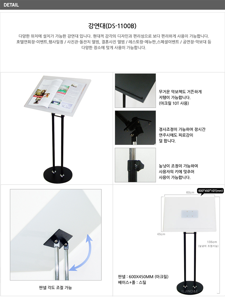 [ÀÏÁø] °­¿¬´ë/ÀÔ±¸ ¸Þ´ºÆÇ°ÅÄ¡´ë(DS-1100B, ¾ÆÅ©¸±ÆÇÅ©±â:600x450mm, ³ôÀÌ:800~1600mm ³ôÀÌÁ¶Àý°¡´É, »çÁø½ºÅĵå/°ø¿¬Àå¾Çº¸´ë)
