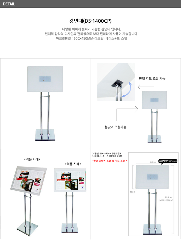 [ÀÏÁø] °­¿¬´ë/ÀÔ±¸ ¸Þ´ºÆÇ°ÅÄ¡´ë(DS-1400CP Å©·Òµµ±Ý, ¾ÆÅ©¸±ÆÇÅ©±â:600x450mm, ³ôÀÌ:800~1600mm ³ôÀÌÁ¶Àý°¡´É, »çÁø½ºÅĵå/°ø¿¬Àå¾Çº¸´ë)