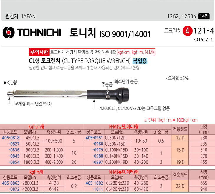 [TOHNICHI/Åä´ÏÄ¡] CLÇü ÅäÅ©·»Ä¡(4200CL3 6~42kgf.m/CL420Nx22D 60~420nm)(Torque Wrench)