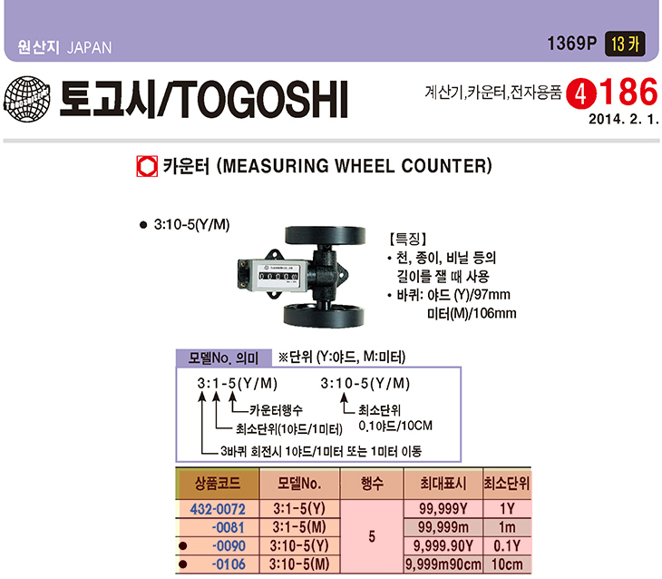 [TOGOSHI] Åä°í½Ã Ä«¿îÅÍ(3:10-5 ¾ßµå, ÃÖ´ëÇ¥½Ã:9999.90Y, ÃÖ¼Ò´ÜÀ§:0.1¾ßµå)(Measuring Wheel Counter)