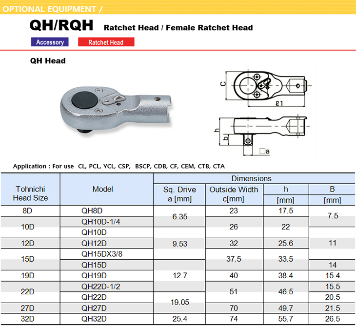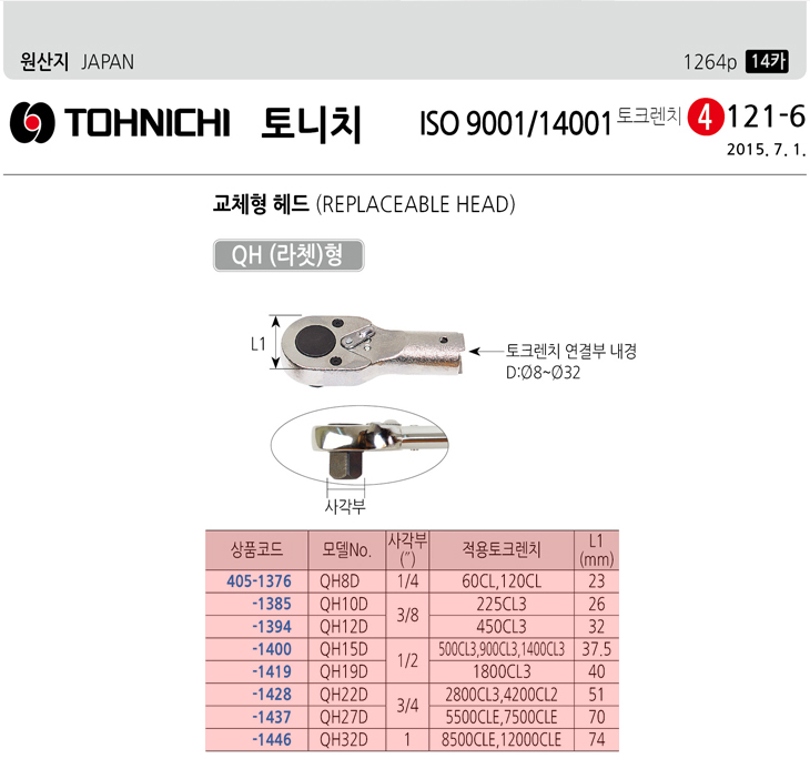 [Åä´ÏÄ¡/TOHNICHI] QH ¶ó౳üÇü Çìµå(QH10D, 3/8ÀÎÄ¡, 225CL3Àû¿ë)(Replaceable Head)