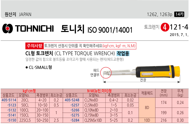 [TOHNICHI/Åä´ÏÄ¡]CL-SmallÇü ÅäÅ©·»Ä¡(150CL 30~150kgf.cm/CL15Nx8D 3~15nm)(Torque Wrench)