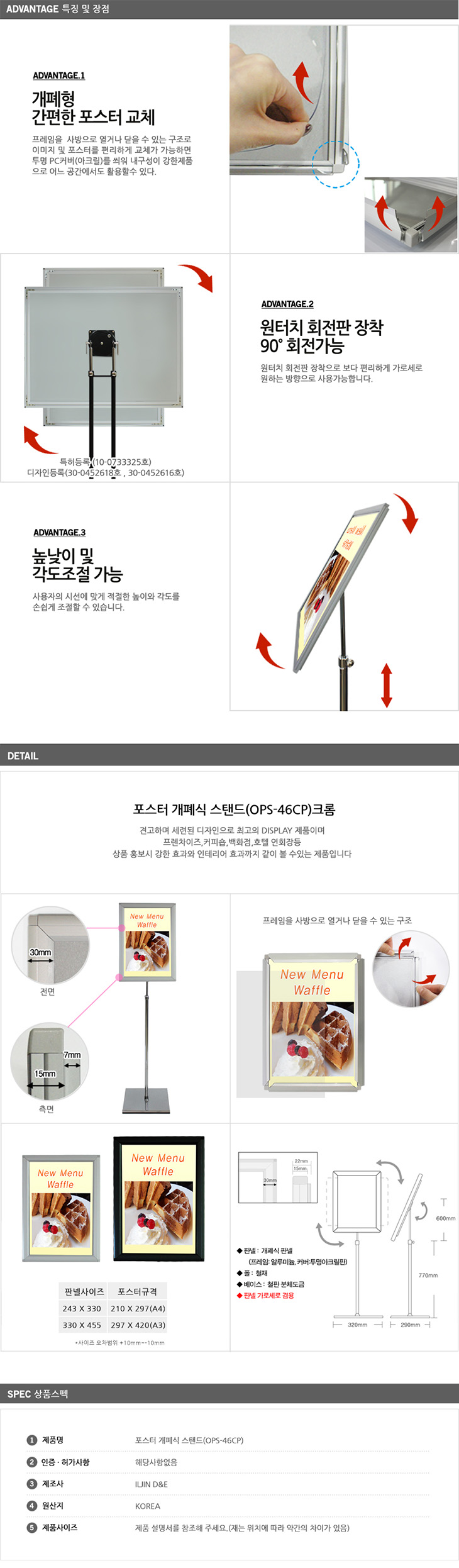 [ÀÏÁø] Àü½Ã¿ë Æ÷½ºÅÍ °³Æó¾×ÀÚ ½ºÅĵå(OPS-46CP, Å©·Òµµ±Ý, ȸÀüÇü, ÆÇ³Ú»çÀÌÁî A4/A3 ¼±Åð¡´É)
