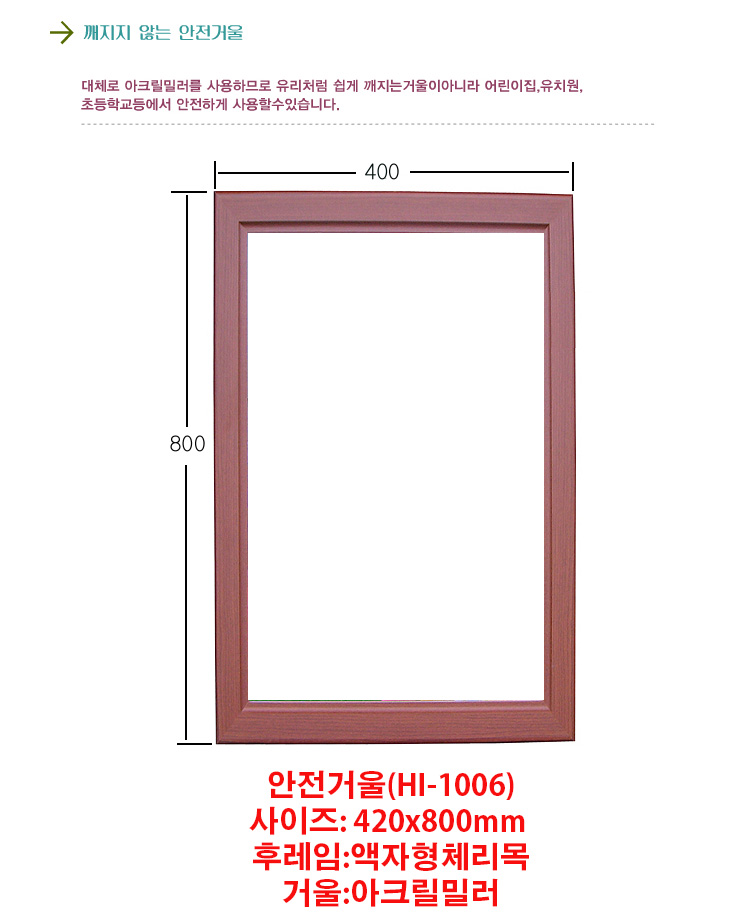 [ÇÑÀÏ] ¾ÈÀü°Å¿ï(400x800mm, ¾ÆÅ©¸±ÀçÁú, ¾×ÀÚÇüü¸®¸ñ, ±úÁöÁö ¾Ê´Â °Å¿ï, ¾î¸°ÀÌÁý/À¯Ä¡¿ø/ÃʵîÇб³)(¹ÝǰºÒ°¡)
