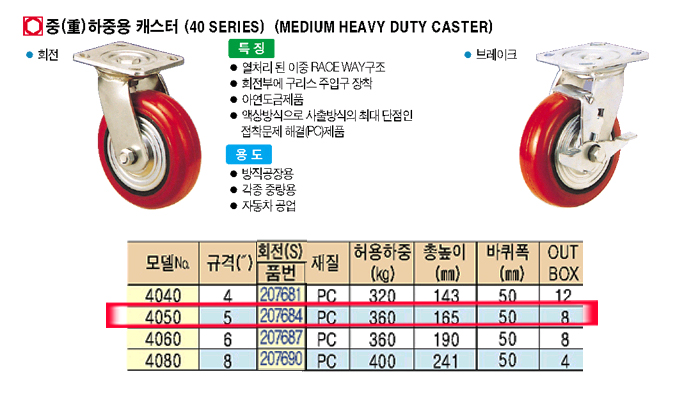 [ACE] Áß(ñì)ÇÏÁß¿ë ij½ºÅÍ(ȸÀü)-4050 ±Ô°Ý5":´ÜÁ¾!!