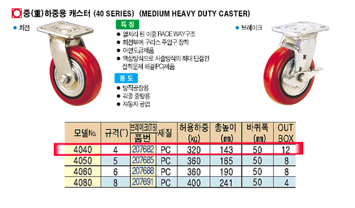 [ACE] Áß(ñì)ÇÏÁß¿ë ij½ºÅÍ(ºê·¹ÀÌÅ©)-4040(TB) ±Ô°Ý4":´ÜÁ¾!!