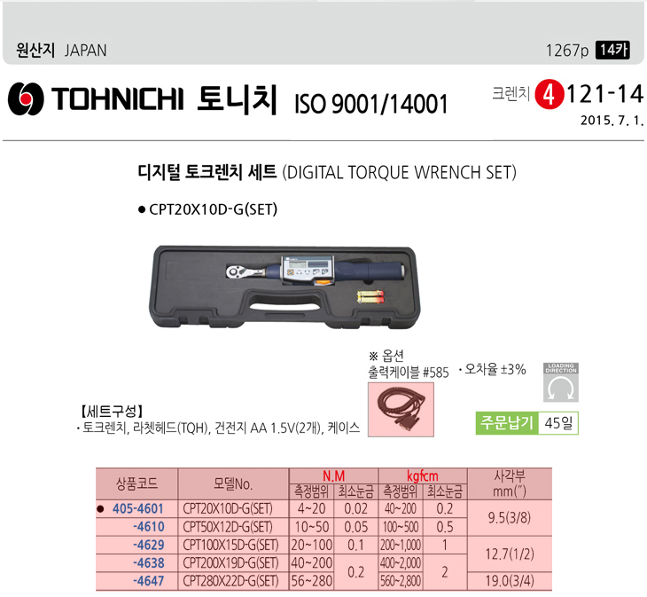 [TOHNICHI/Åä´ÏÄ¡] CPTŸÀÔ µðÁöÅÐ °Ë»ç/ÀÛ¾÷¿ë Çìµå±³Ã¼ ÅäÅ©·»Ä¡ ¼¼Æ®(CPT200x19D-G 400~2000kfg.cm/40~200nm)(Torque Wrench)