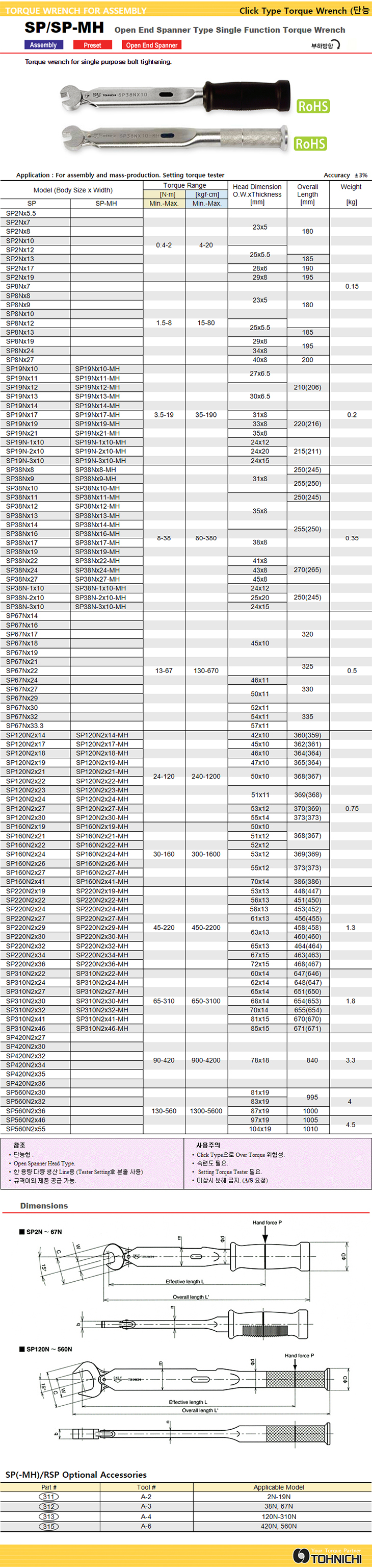 [Åä´ÏÄ¡/TOHNICHI] SPÇü ÀÛ¾÷¿ë ÅäÅ©·»Ä¡(SP420N2, ´Ù¾çÇѸ𵨠¼±Åð¡´É)(SP Type Torque Wrench)