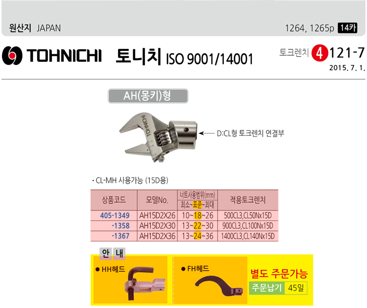 [Åä´ÏÄ¡/TOHNICHI] AH ¸ùŰŸÀÔ ±³Ã¼Çü Çìµå(AH15D2-36, CL-MHÅäÅ©·»Ä¡¿¬°á»ç¿ë)(Replaceable Head)