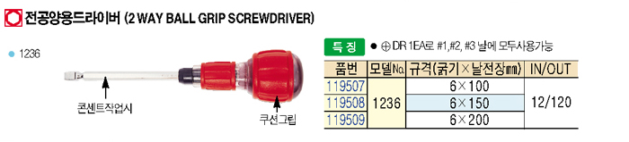 [½ãÇöó±×] Àü°ø ¾ç¿ë µå¶óÀ̹ö(2Way Ball Grip Screwdriver) 1236 (6x135mm)