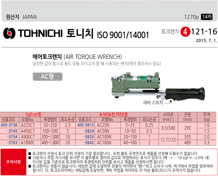 [TOHNICHI/Åä´ÏÄ¡] ACÇü ¿¡¾îÅäÅ©·»Ä¡(A1800C 400~1800kgf.cm/AC180N 40~180nm)(Air Torque Wrench)