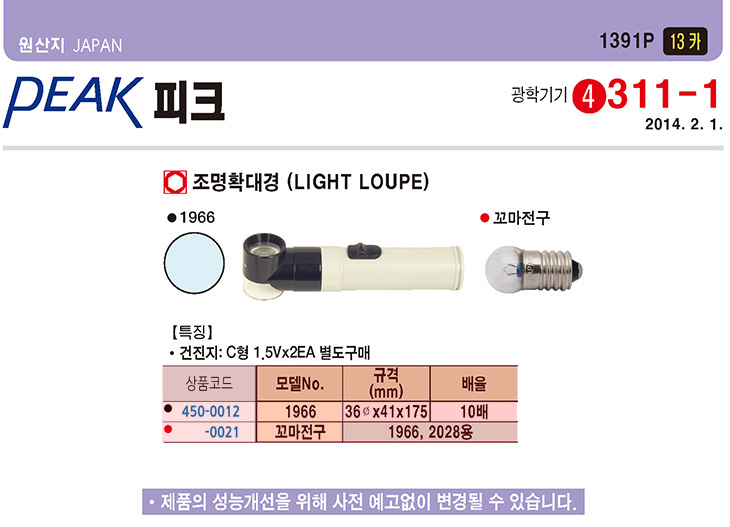 [PEAK/ÇÇÅ©]Á¶¸íÈ®´ë°æ(PEAK-1966,¨ª36x41x175mm,10¹èÁÜ)(LIGHT LOUPE)