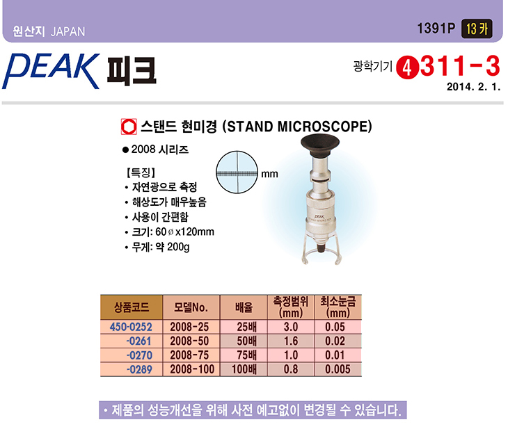 [PEAK/ÇÇÅ©]½ºÅĵå Çö¹Ì°æ(PEAK-2008½Ã¸®Áî,¨ª60.0x120mm)(Stand Microscope)