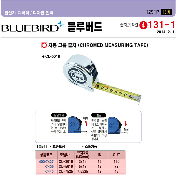 CL-5019, 5.0¹ÌÅÍx19mm (C400-7436)Àº Á¦Ç°´ÜÁ¾ÀÌ µÇ¾î¼=>´ëü»óǰ[ ÁÙÀÚ(ÀÚµ¿,Å©·ÒÄÚÆÃ) ºí·çÅØÁÙÀÚ (C400-8417) CL-135S(5Mx19)(=CL-5019HI) ]À¸·Î °ø±ÞÀÌ °¡´ÉÇϸç,