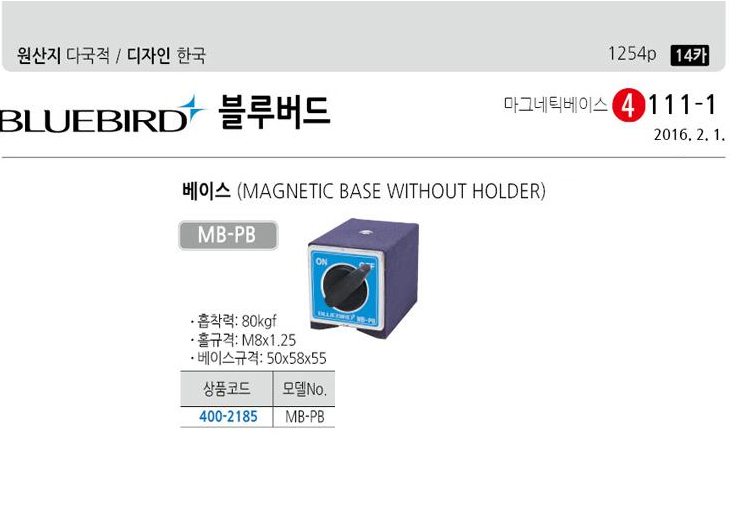 [ºí·ç¹öµå] ¸¶±×³×ƽº£À̽º(MB-PB, Ȧ±Ô°Ý:M8x1.25/º£À̽º±Ô°Ý:50x58x55mm)(Magnetic Base)