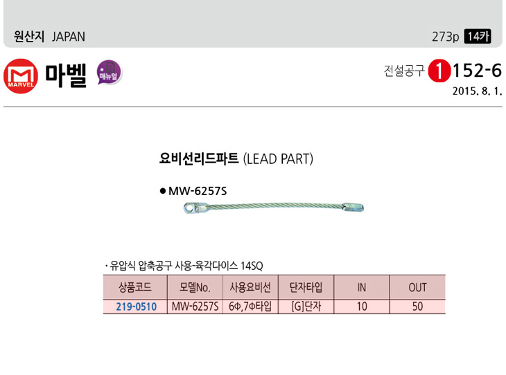 [¸¶º§] ¿äºñ¼± ¸®µåÆÄÆ®(MW-6257S, »ç¿ë¿äºñ¼± 6ÆÄÀÌ/7ÆÄÀÌ, G´ÜÀÚ)(Lead Part)