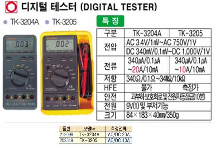 [TAEKWANG] µðÁöÅÐ Å×½ºÅÍ (DIGITAL TESTER) TK-3204A