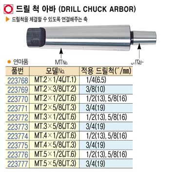 [BLUEBIRD] MT.2 X 1/2(JT.6) µå¸± ô ¾Æ¹Ù(DRILL CHUCK ARBOR)