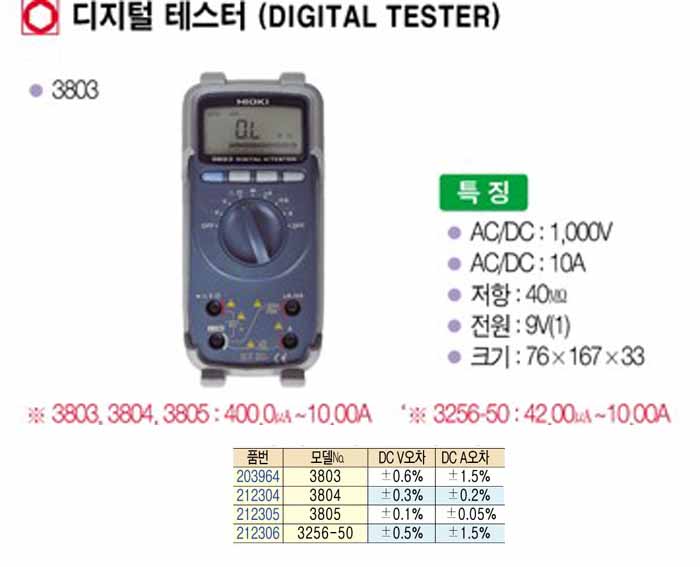 [HIOKI] µðÁöÅÐ Å×½ºÅÍ (DIGITAL TESTER)-3803-Á¦Ç°´ÜÁ¾,ǰÀý!