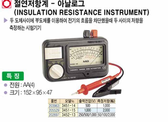 [HIOKI] Àý¿¬ÀúÇ×°è-¾Æ³¯·Î±×(INSULATION RESISTANCE INSTRUMENT) 3451-14