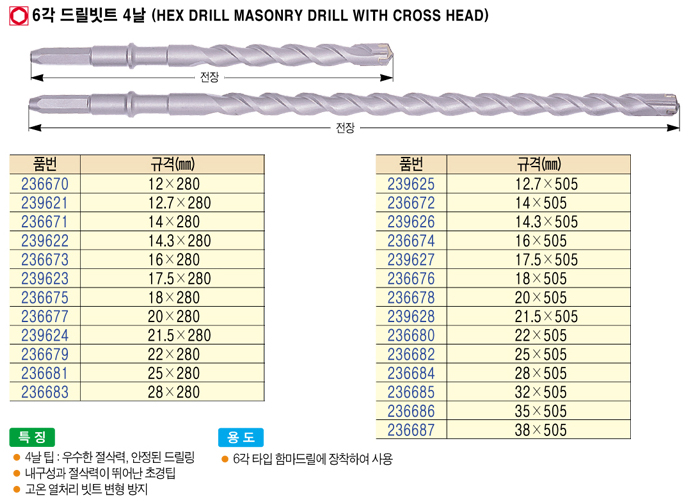 [UDT] 6°¢ µå¸±ºøÆ® 4³¯(Hex Drill Masonry Drill With Cross Head) 22x280mm