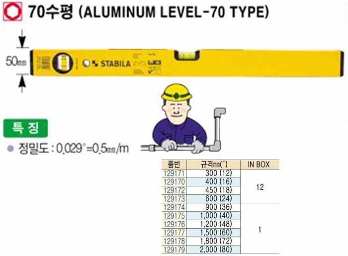 [STABILA] ½ºÅ¸ºô¶ó 70 ¼öÆò(ALUMINUM LEVEL-70 TYPE)-129171
