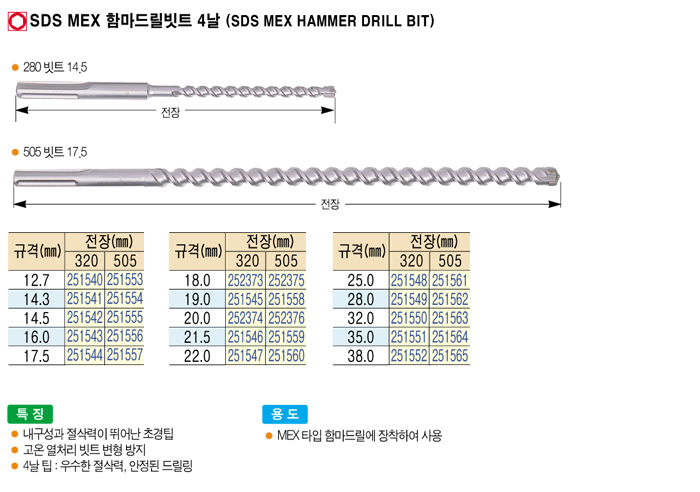 [žçÆÄ¿ö] SDS MEX ÇÔ¸¶µå¸±ºøÆ® 4³¯(SDS MEX HAMMER DRILL BIT) 320ºøÆ® 32.0mm