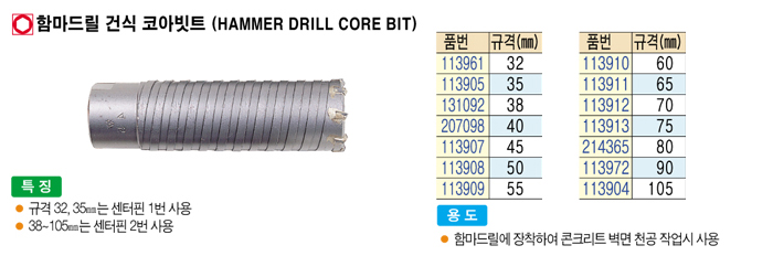 [žçÆÄ¿ö] ÇÔ¸¶µå¸± °Ç½Ä ÄھƺøÆ®(Hammer Drill Core Bit) 38mm