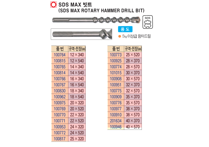 [º¸½¬] SDS MAX ºøÆ®(SDS MAX ROTARY HAMMER DRILL BIT) 16x540mm