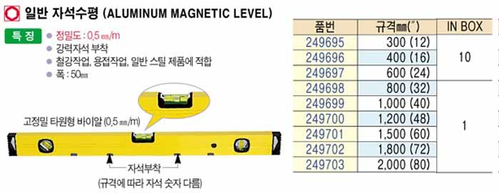 [bluebird] ÀÏ¹Ý ÀÚ¼® ¼öÆò (ALUMINUM MAGNETIC LEVEL) 1,000mm(40")
