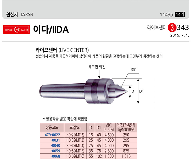 [ÀÌ´Ù]¶óÀ̺꼾ÅÍ(HD-6S, MT.6, 55x102mm 1300RPM, ¼±¹ÝÀÛ¾÷¿ë ½É¾Ð´ë)