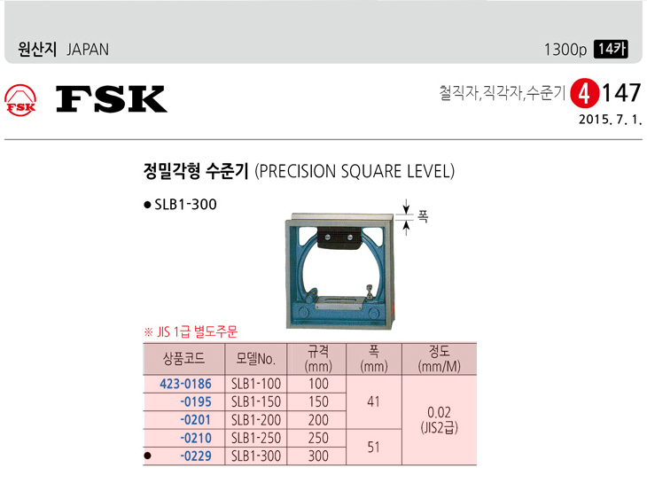 [FSK] Á¤¹Ð°¢Çü ¼öÁرâ(SLB1-100, Æø:41mm, Á¤µµ:0.02mm/M JIS 2±Þ)(Precision Square Level)