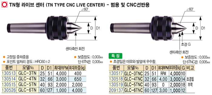 [Æ÷ÀÎÆ®ÅØ] GLC-4TN TNÇü ¶óÀÌºê ¼¾ÅÍ-¹ü¿ë ¹× CNC¼±¹Ý¿ë(TN TYPE CNC LIVE CENTER)