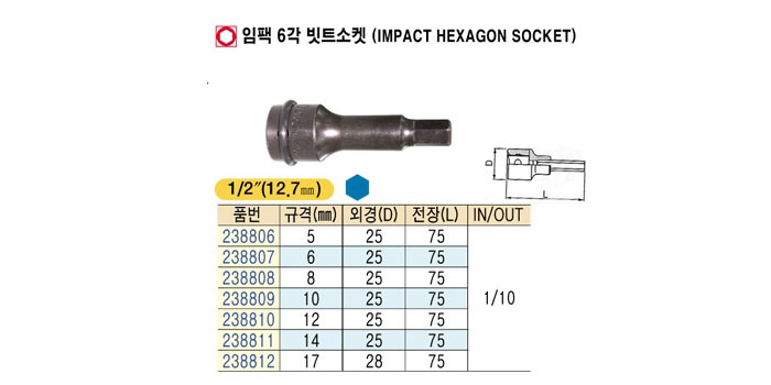 [Åä³×]ÀÓÆÑ 6°¢ ºøÆ®¼ÒÄÏ(IMPACT HEXAGON SOCKET)1/2"(12.7mm)-5