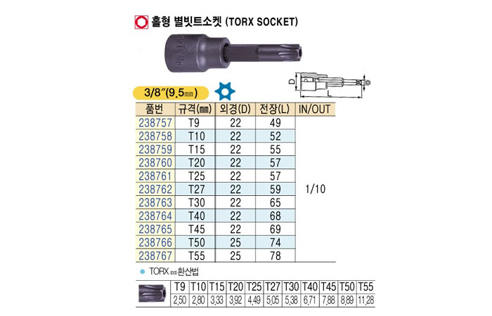 [Åä³×]ȦÇü º°ºøÆ®¼ÒÄÏ(TORX SOCKET)3/8"(9.5mm)-T30