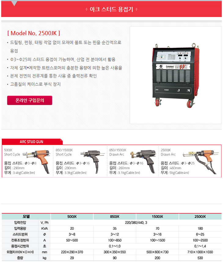 [¿ùµåÀ£] º¼Æ®¿ëÁ¢±â/¾ÆÅ© ½ºÅÍµå ¿ëÁ¢±â(2500JK, ½ºÅ͵åÁ÷°æ:3~25ÆÄÀÌ, 180KVA, 230/380/440V¿ë)(Stud Welding Machine)