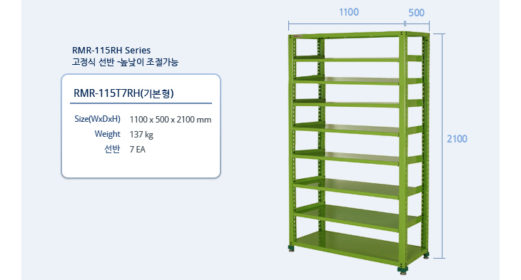 [·ÏŰ/ROCKY]Áß·®Çü °ø±¸º¸°ü·¢(RMR-115T7RH, °íÁ¤½Ä¼±¹Ý 7°³, 1100x500x2100mm)(Multi Rack)